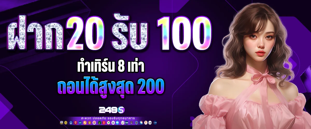 ฝาก 20 → รับเพิ่ม 80 = รวม 100 / ทำเทิร์น 8 เท่า / ถอนได้สูงสุด 200