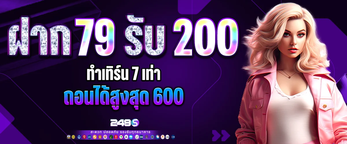 ฝาก 79 → รับเพิ่ม 121 = รวม 200 / ทำเทิร์น 7 เท่า / ถอนได้สูงสุด 600